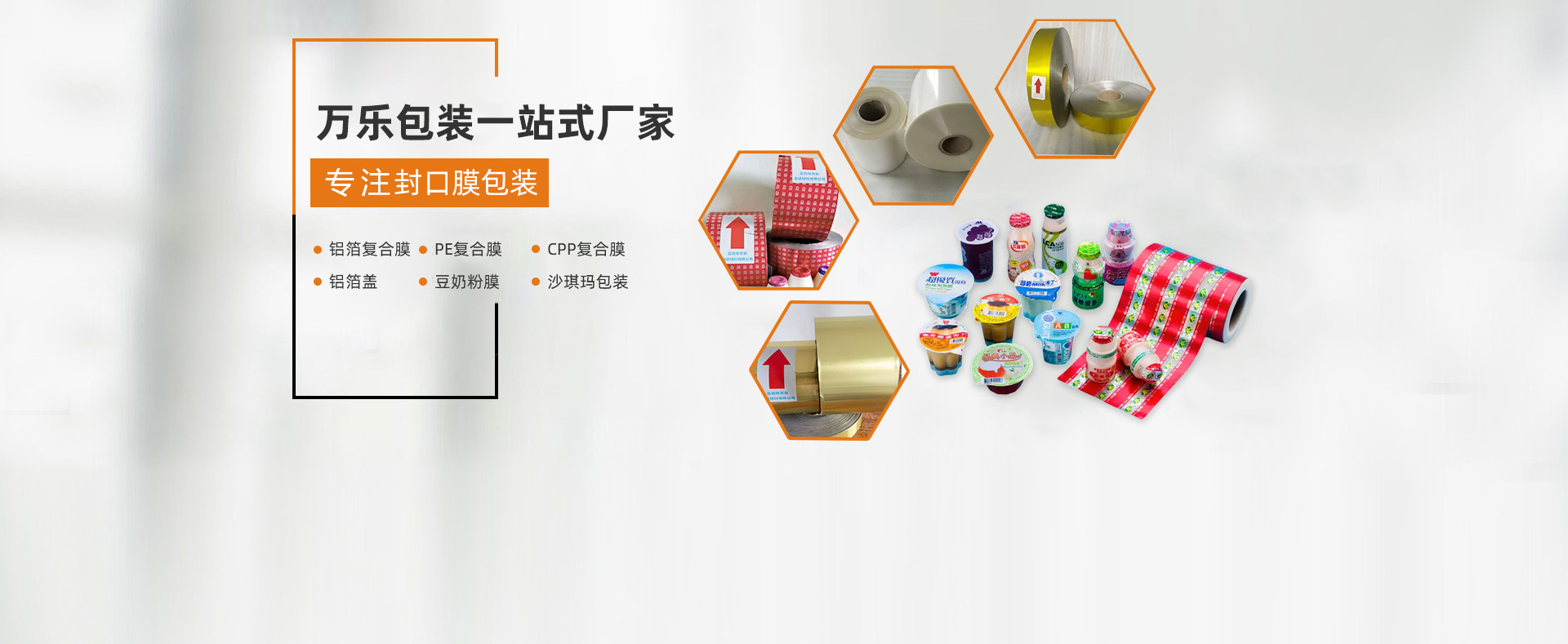 孟州市萬樂包裝材料有限公司是一家生產鋁箔復合膜、PE復合膜、CPP復合膜、鋁箔蓋、豆奶粉膜、沙琪瑪包裝、膜食品復合膜等產品的公司。  孟州市萬樂包裝材料有限 公司擁有完整、科學的質量監測管理體系。  孟州市萬樂包裝材料有限公司以誠信、實力和產品質量獲得業界的認可。  歡迎各界朋友蒞臨參觀、指導和業務洽談。......了解更多>>